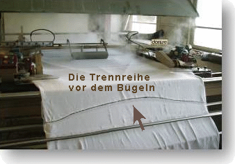 Sehr oft sind die Seitenränder ( rechter bzw. linker Abzug) unterschiedlich lang , dies können wir regulieren, ein gleichmäßiges Musterbild entsteht. Nach dem Trennen kann Ihr Zuschneider die Ware exakt stapeln und ohne großen Zeitaufwand maschinell zuschneiden.